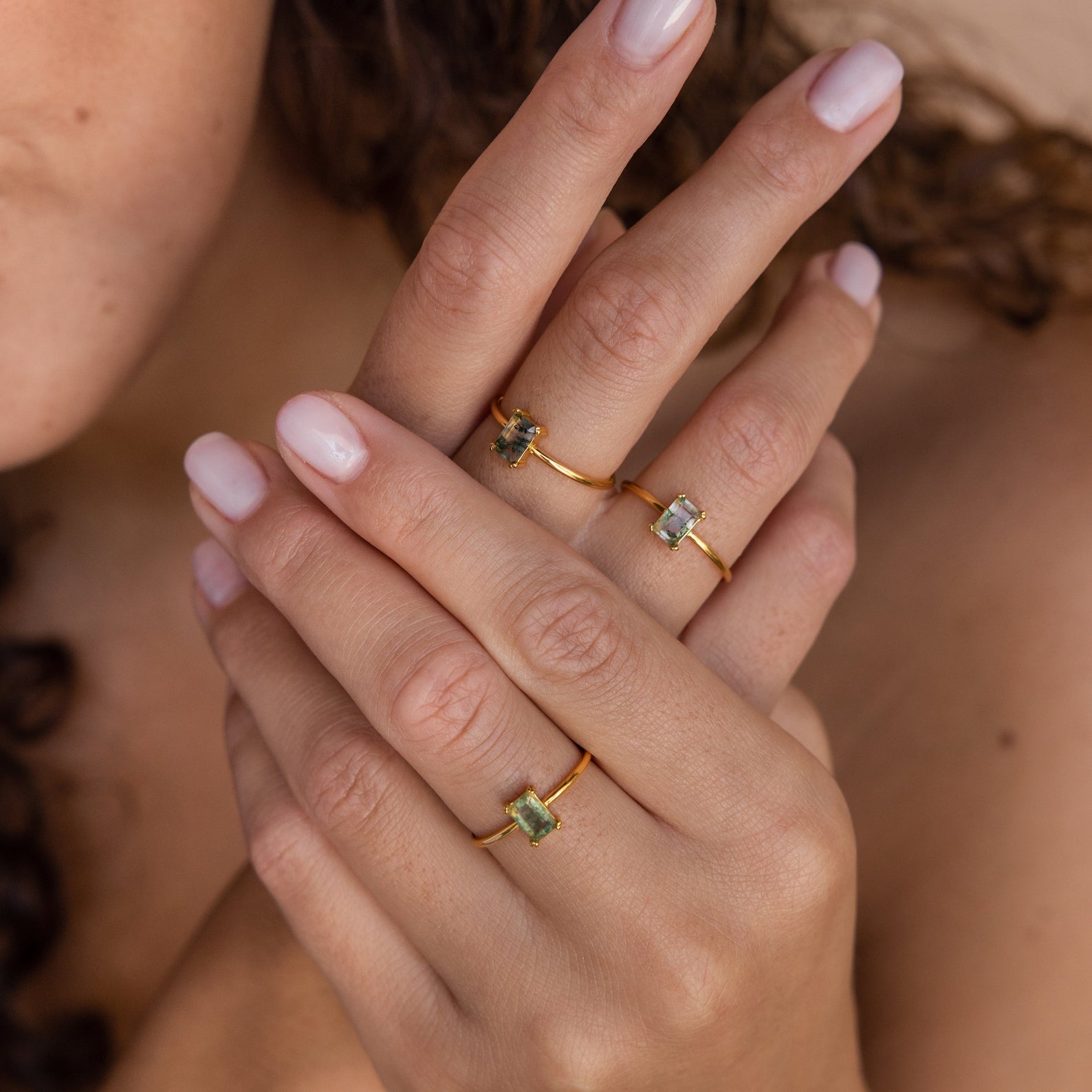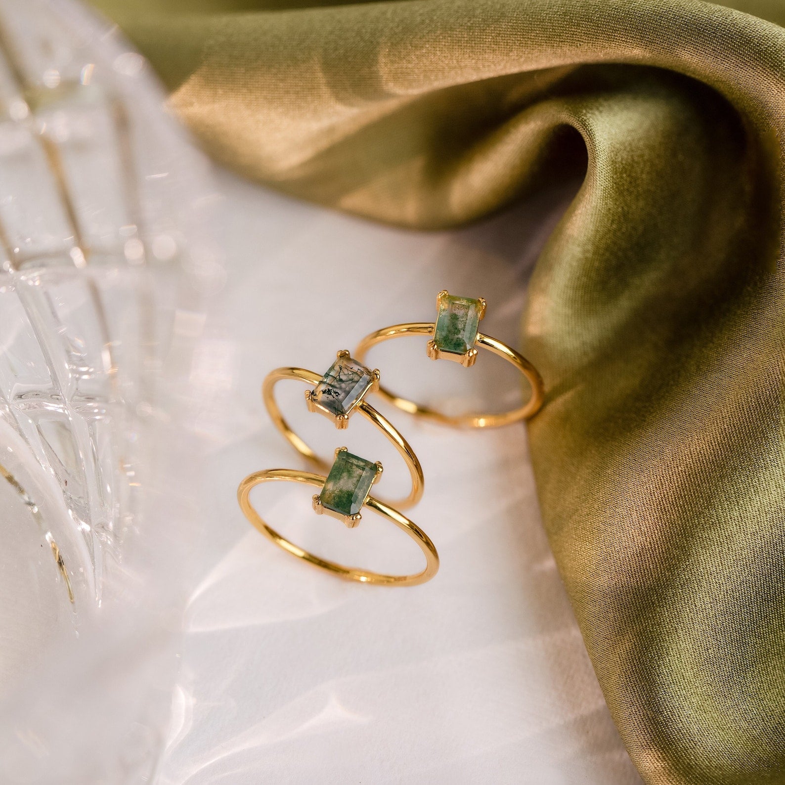 Introducing the emerald-cut Agate Birthstone Ring, a striking piece that exudes elegance and refined style. Meticulously crafted, this ring features a rectangular-shaped Agate gemstone with captivating natural patterns and a smooth, polished finish. With its vintage design and timeless charm, this ring effortlessly elevates your outfit for any occasion ♡