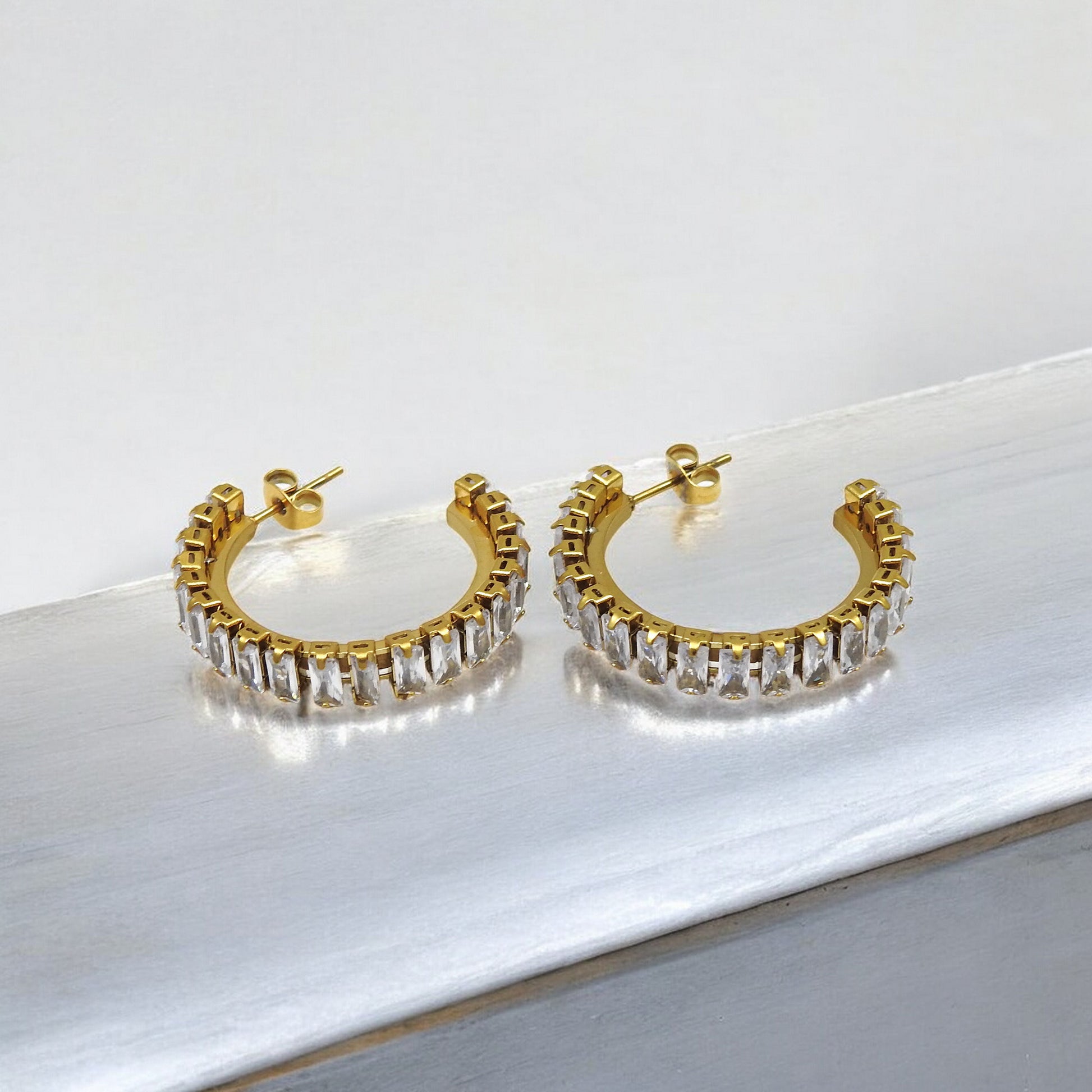 Baguette Cut White CZ Galaxy Hoop Earrings