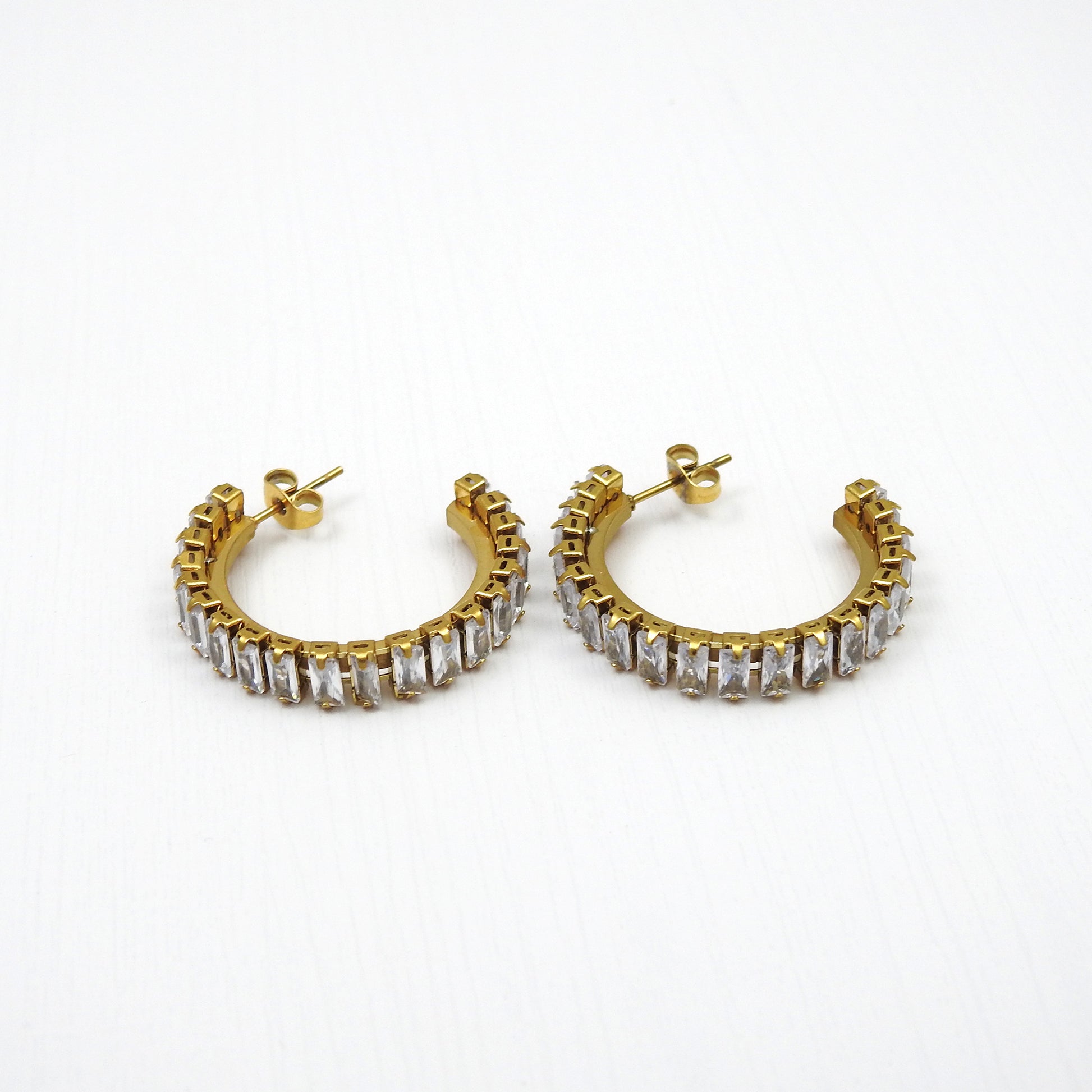 - Baguette-cut white CZ stones for a brilliant sparkle