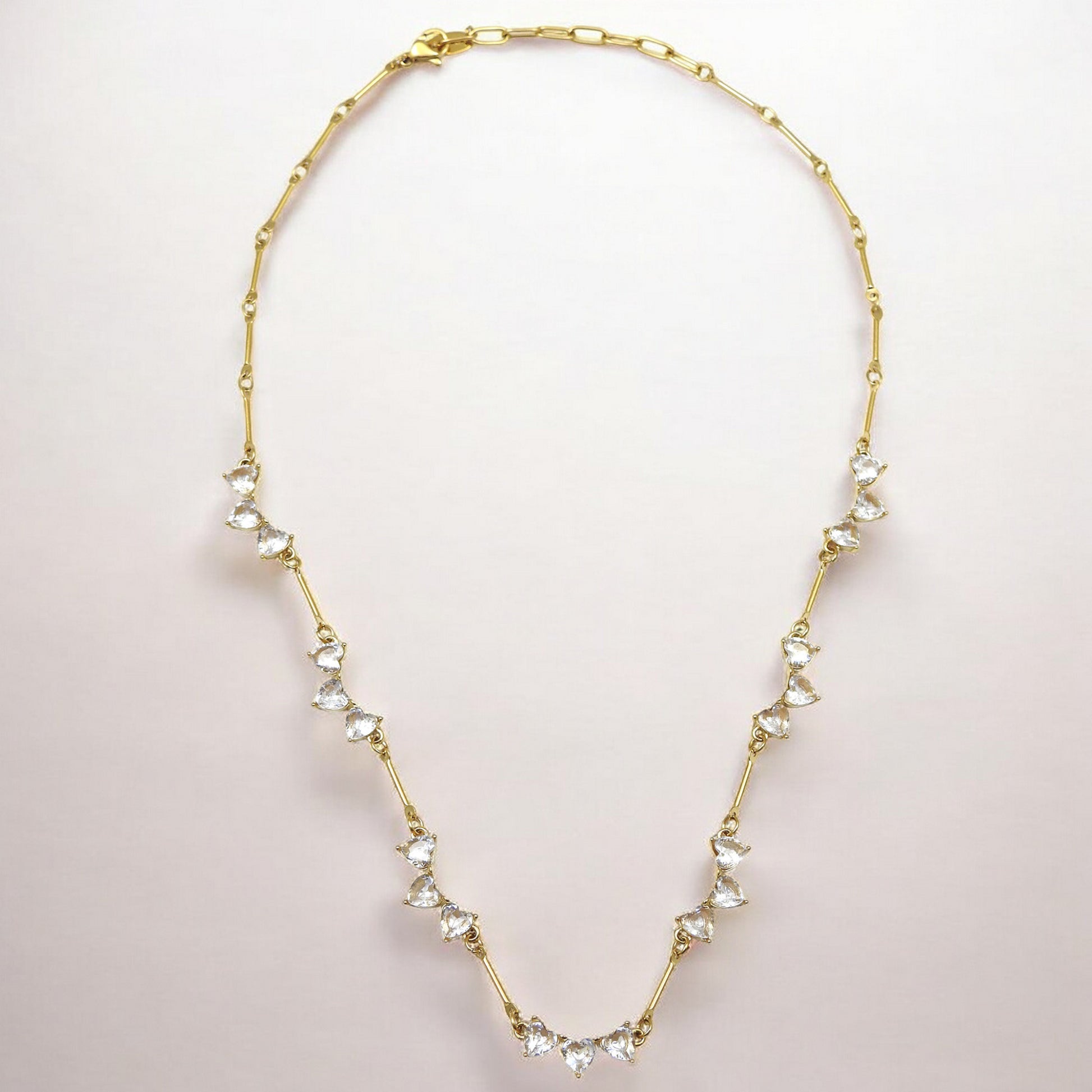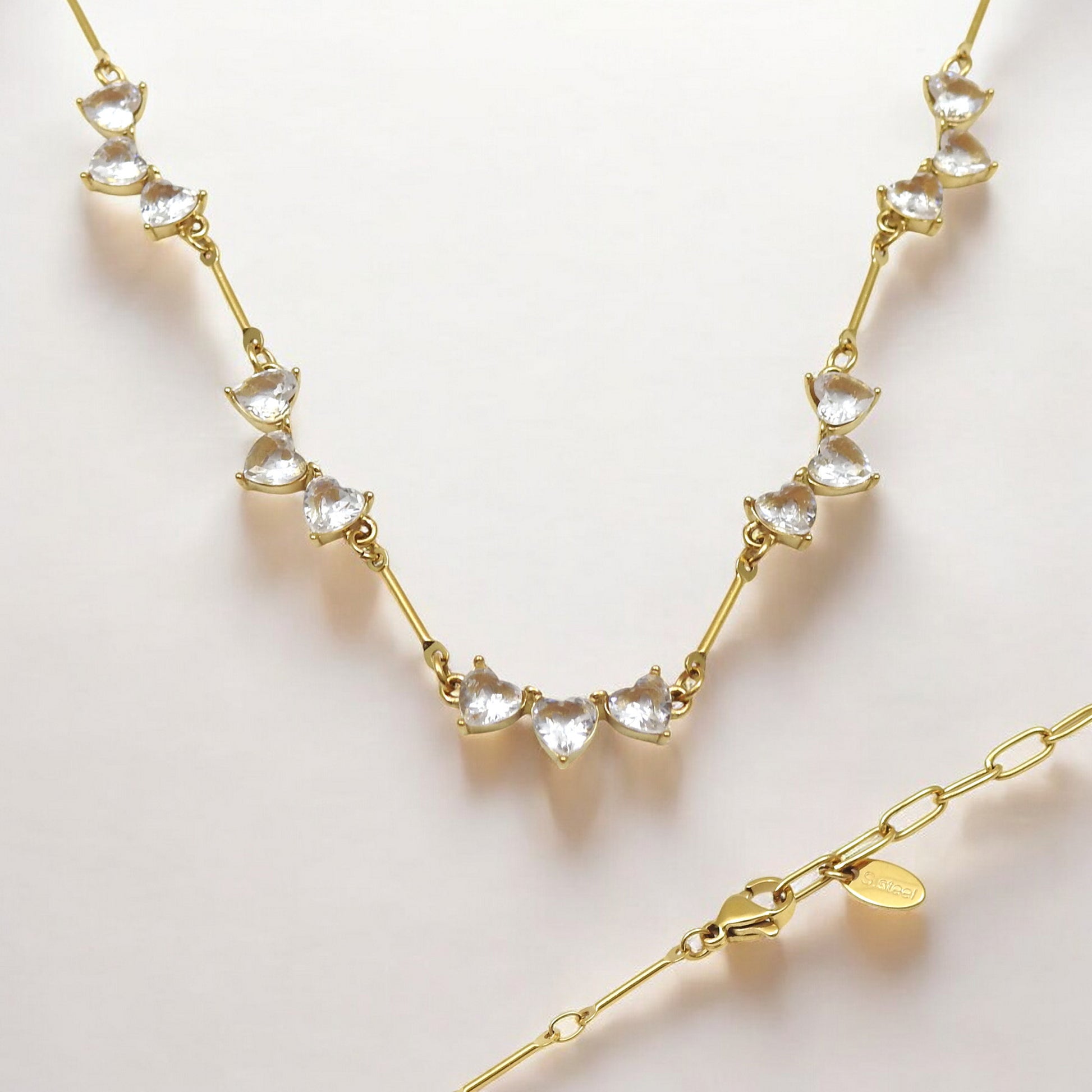 This stunning Heart-Shaped Cubic Zirconia Statement Necklace is the perfect blend of elegance and boldness. Featuring a large, radiant heart-shaped cubic zirconia, this necklace captures the light from every angle, creating a dazzling display of brilliance. The necklace is crafted with precision to showcase the sparkling clarity and shine of the zirconia, set against a sleek, chain that adds a modern touch. Ideal for special occasions, weddings, or adding a dramatic flair to any outfit, this statement piece will surely turn heads and leave a lasting impression. Whether you're treating yourself or looking for the perfect gift, this necklace offers timeless beauty and sophistication.