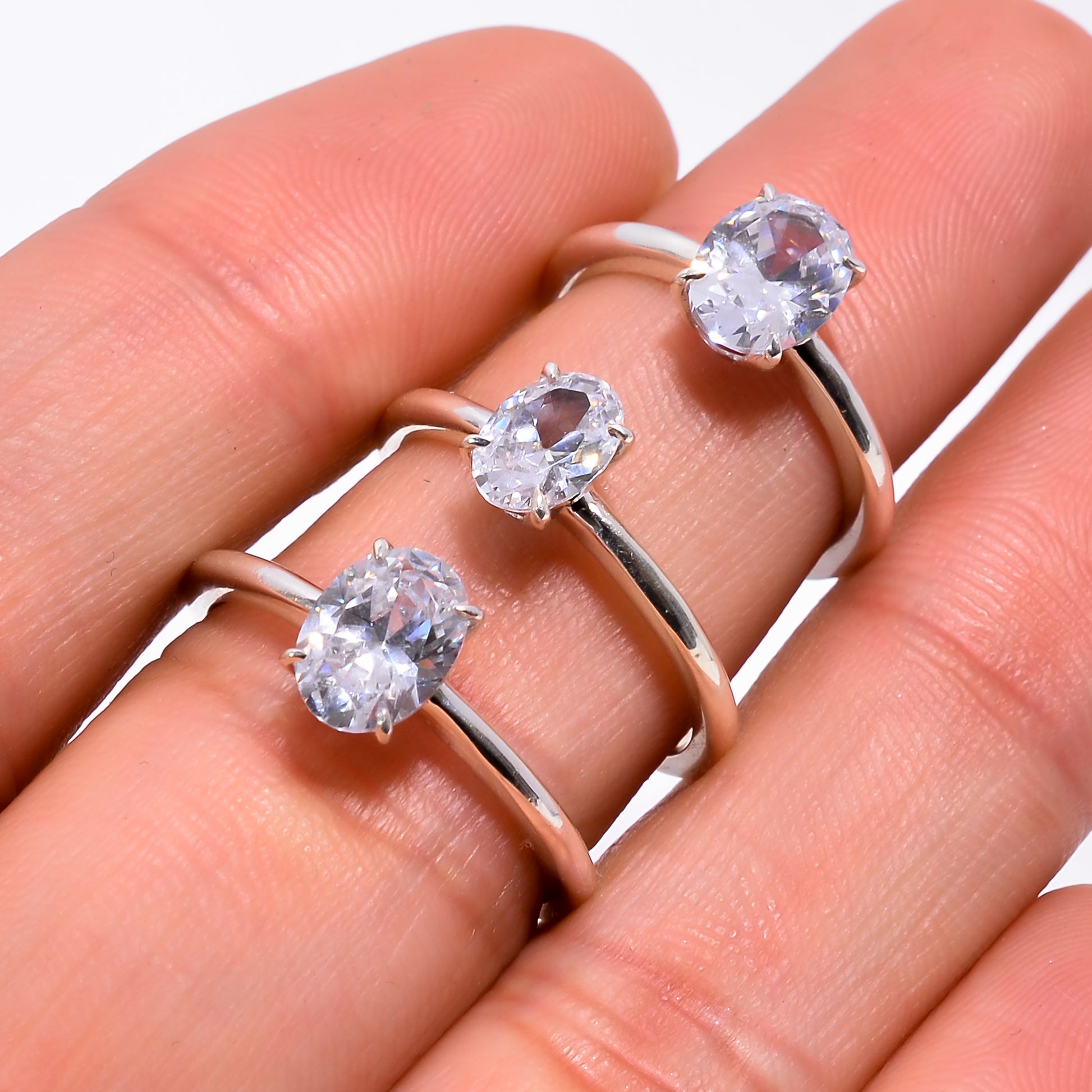 Oval White CZ Engagement Ring 925 Silver 14k Gold Plated Handmade Wedding Band Stylish Stackable Ring Anniversary Gift for Her