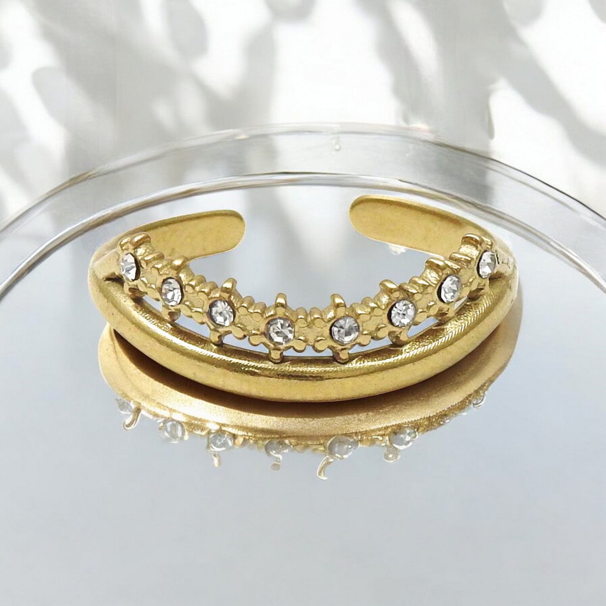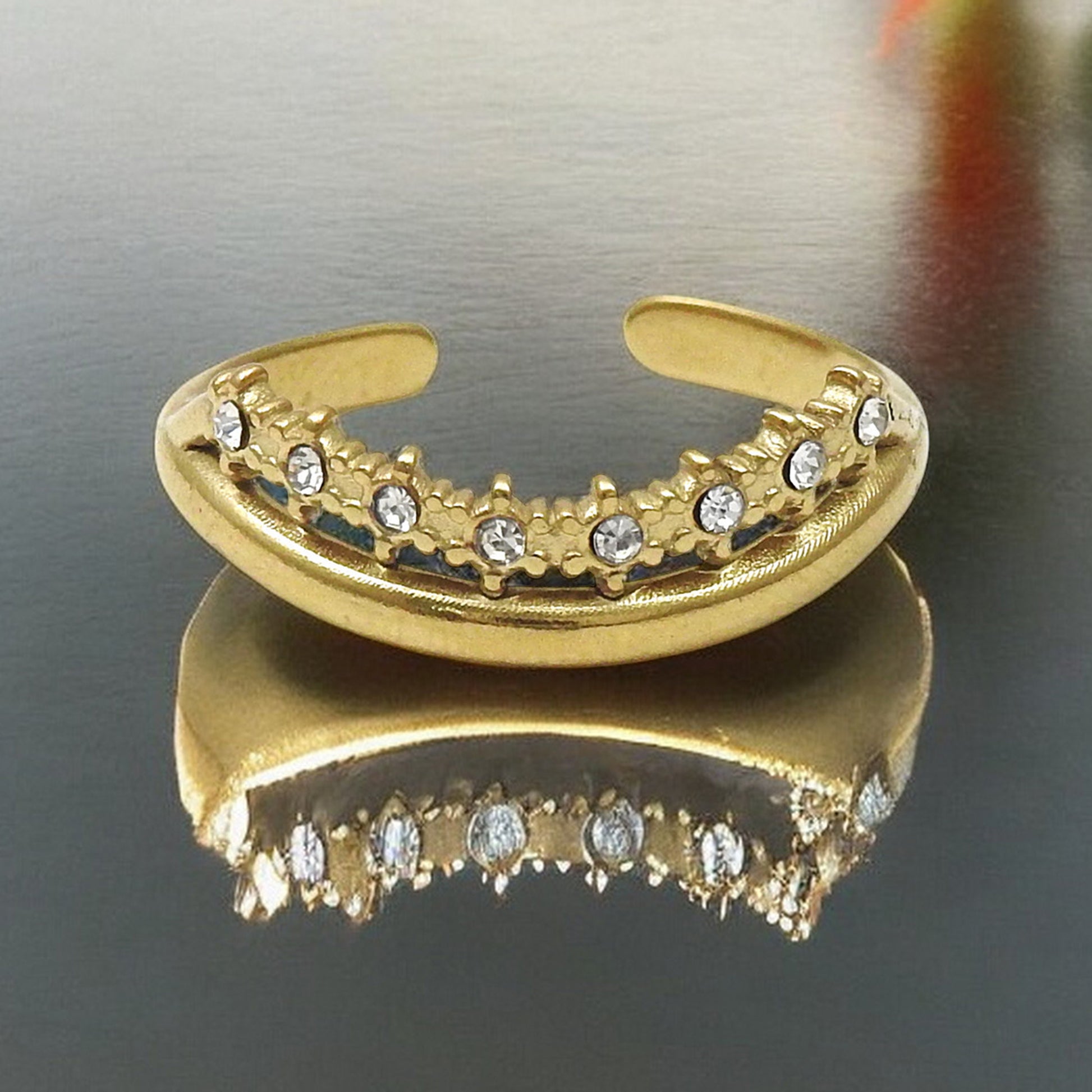 Our Studded Tiara Wave Finger Ring is a a stunning piece of jewelry that blends classic design with a unique twist. This special design makes for a perfect gift for birthdays, anniversaries, or other special occasions!